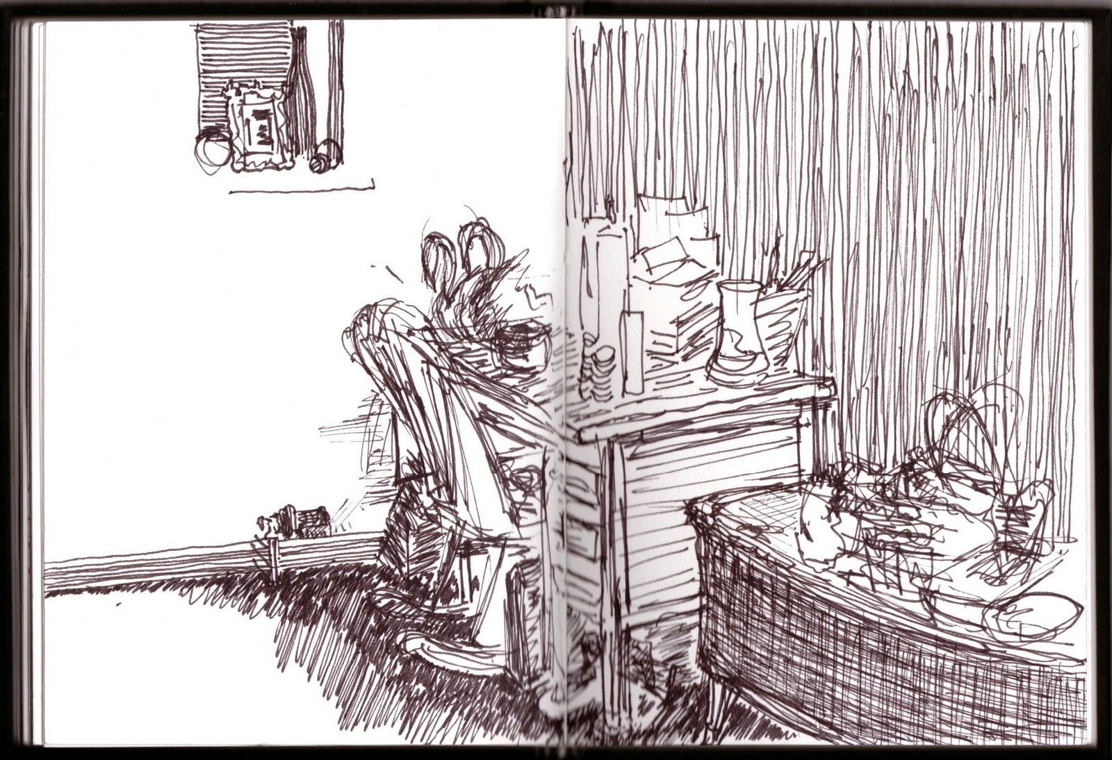Two-Page sketch. Ink on paper.